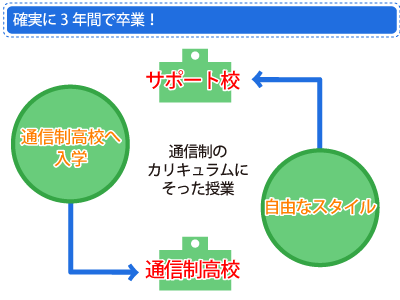 通信制高校&サポート校というシステムで確実に3年間で高校卒業資格を!